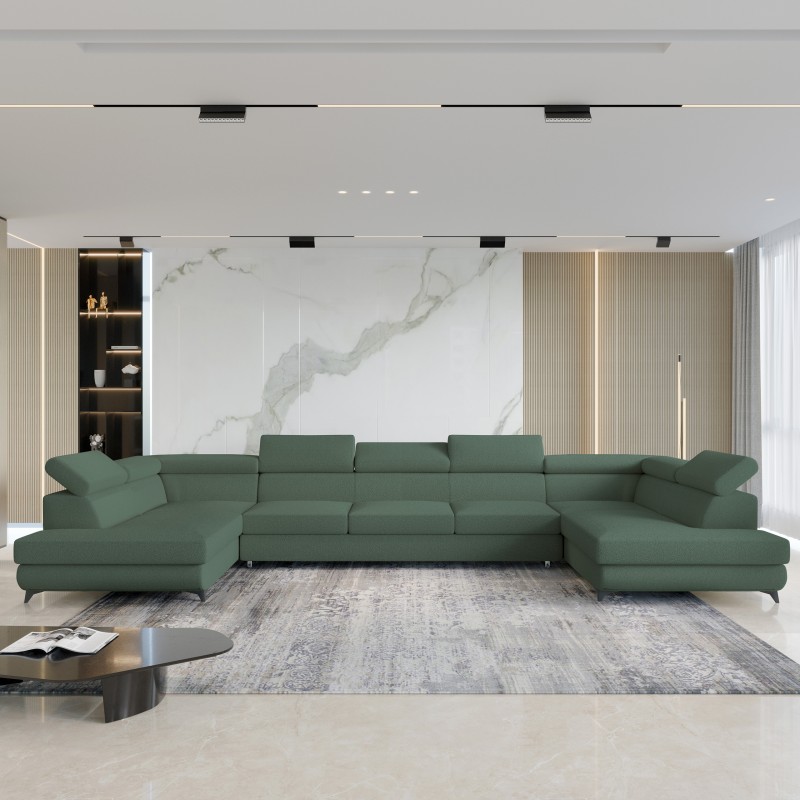 Masseno Narożnik URMANO z funkcją spania i pojemnikiem na pościel Narozniki U, Rozkładana sofa - Zielony, QUELLE 37