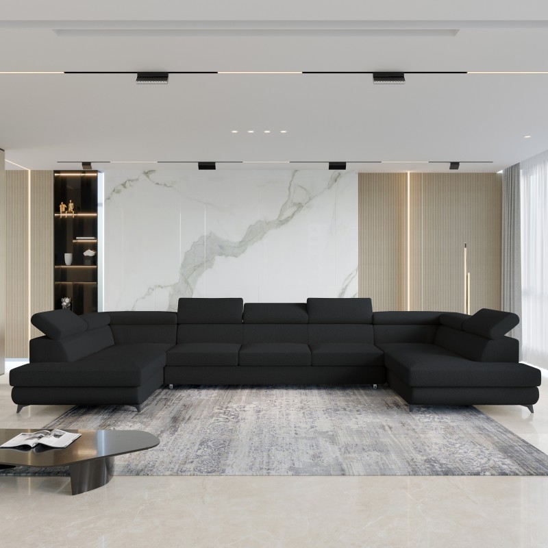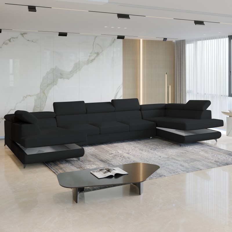 Masseno Narożnik URMANO z funkcją spania i pojemnikiem na pościel Narozniki U, Rozkładana sofa - Czarny, QUELLE 100