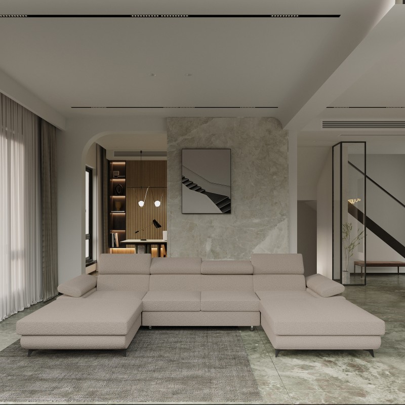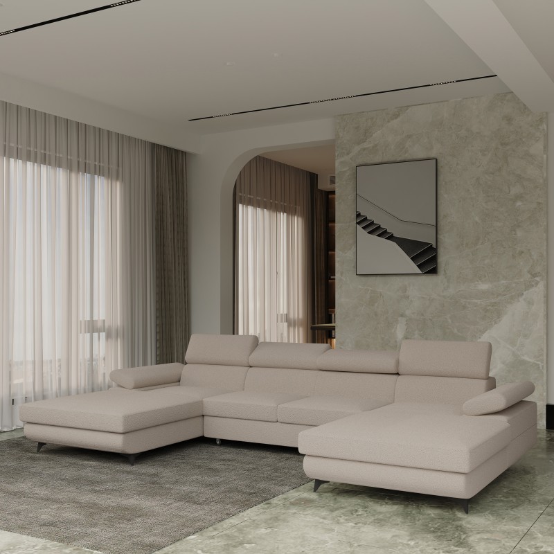 Wyobraź sobie wieczór spędzony na tym przestronnym narożniku, podczas gdy światło delikatnie oświetla teksturowaną powierzchnię tkaniny. Dzięki pojemności dla sześciu osób, DETTI Q staje się idealnym miejscem do wspólnych seansów filmowych, gier planszowych czy po prostu beztroskich rozmów. Niezależnie od tego, czy szukasz centralnego punktu do swojego salonu, czy po prostu marzysz o chwili wytchnienia, ten narożnik dostarczy Ci komfortu na najwyższym poziomie.