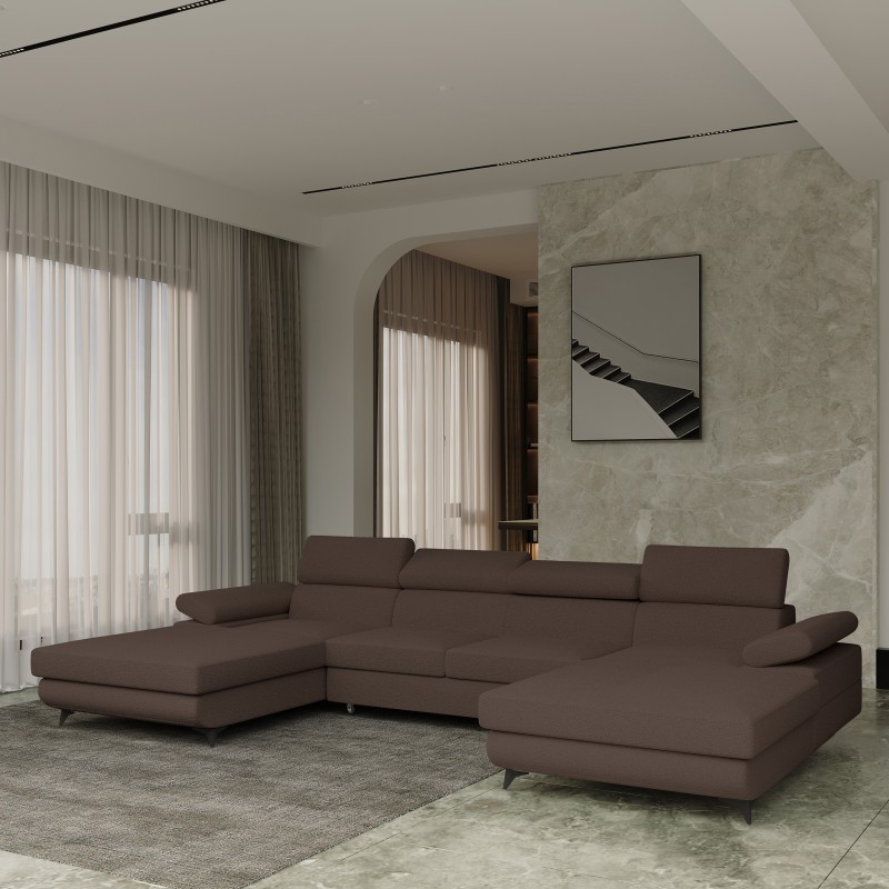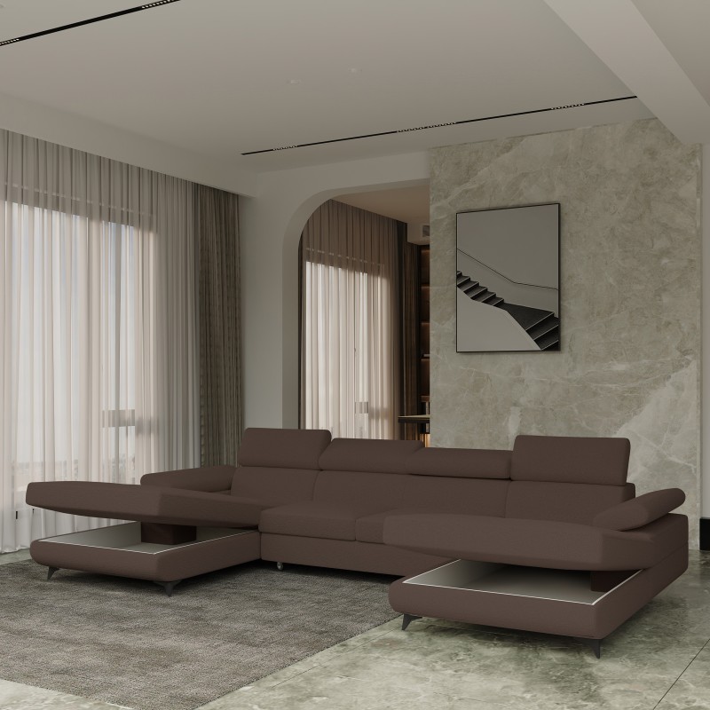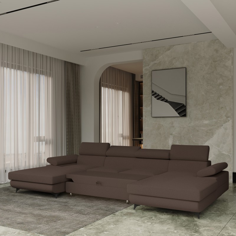 Masseno Narożnik DETTI z funkcją spania i pojemnikiem na pościel Narozniki U, Rozkładana sofa - Brązowy, QUELLE 25