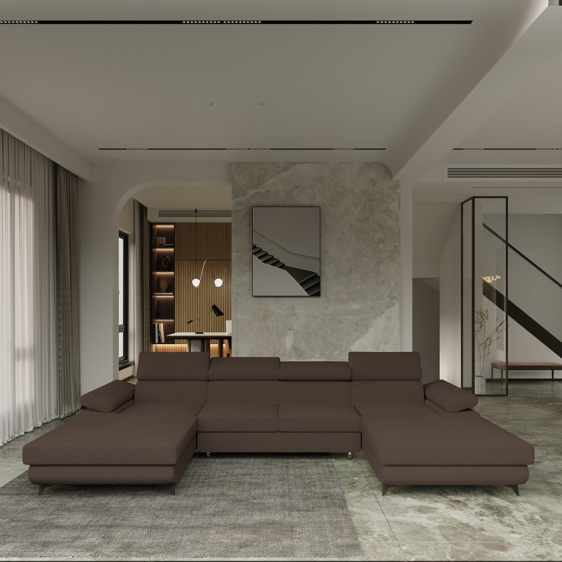 Wyobraź sobie wieczór spędzony na tym przestronnym narożniku, podczas gdy światło delikatnie oświetla teksturowaną powierzchnię tkaniny. Dzięki pojemności dla sześciu osób, DETTI Q staje się idealnym miejscem do wspólnych seansów filmowych, gier planszowych czy po prostu beztroskich rozmów. Niezależnie od tego, czy szukasz centralnego punktu do swojego salonu, czy po prostu marzysz o chwili wytchnienia, ten narożnik dostarczy Ci komfortu na najwyższym poziomie.