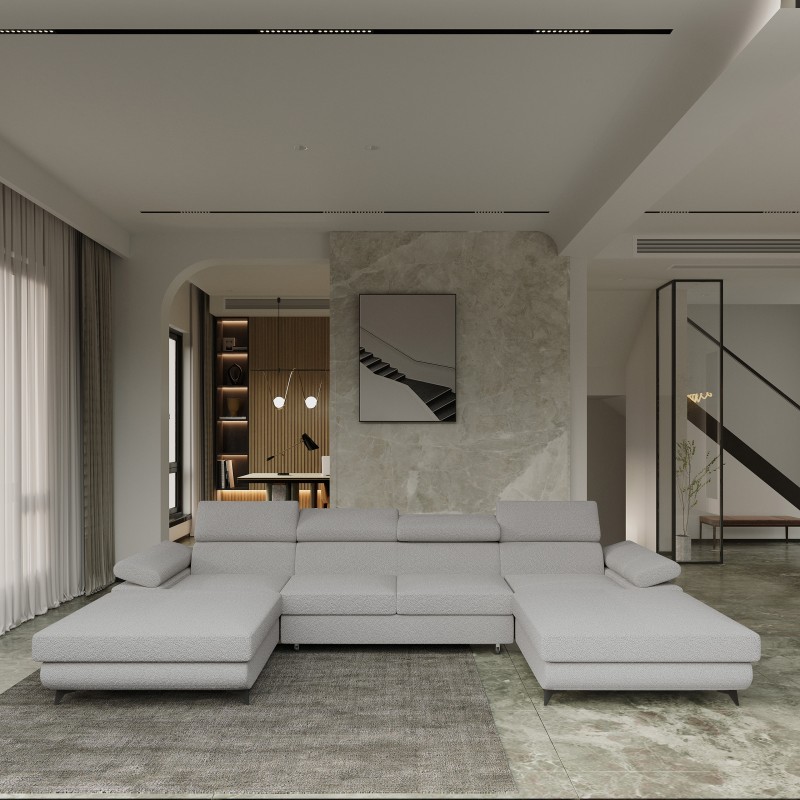 Wyobraź sobie wieczór spędzony na tym przestronnym narożniku, podczas gdy światło delikatnie oświetla teksturowaną powierzchnię tkaniny. Dzięki pojemności dla sześciu osób, DETTI Q staje się idealnym miejscem do wspólnych seansów filmowych, gier planszowych czy po prostu beztroskich rozmów. Niezależnie od tego, czy szukasz centralnego punktu do swojego salonu, czy po prostu marzysz o chwili wytchnienia, ten narożnik dostarczy Ci komfortu na najwyższym poziomie.