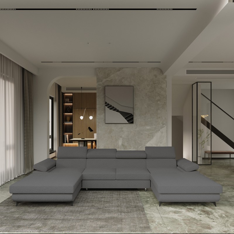 Wyobraź sobie wieczór spędzony na tym przestronnym narożniku, podczas gdy światło delikatnie oświetla teksturowaną powierzchnię tkaniny. Dzięki pojemności dla sześciu osób, DETTI Q staje się idealnym miejscem do wspólnych seansów filmowych, gier planszowych czy po prostu beztroskich rozmów. Niezależnie od tego, czy szukasz centralnego punktu do swojego salonu, czy po prostu marzysz o chwili wytchnienia, ten narożnik dostarczy Ci komfortu na najwyższym poziomie.