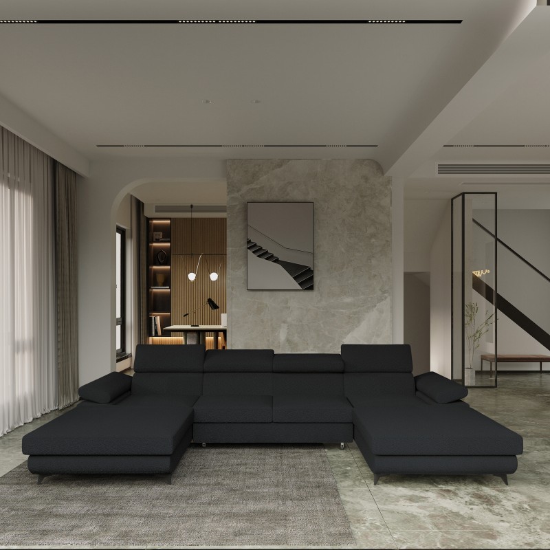 Wyobraź sobie wieczór spędzony na tym przestronnym narożniku, podczas gdy światło delikatnie oświetla teksturowaną powierzchnię tkaniny. Dzięki pojemności dla sześciu osób, DETTI Q staje się idealnym miejscem do wspólnych seansów filmowych, gier planszowych czy po prostu beztroskich rozmów. Niezależnie od tego, czy szukasz centralnego punktu do swojego salonu, czy po prostu marzysz o chwili wytchnienia, ten narożnik dostarczy Ci komfortu na najwyższym poziomie.