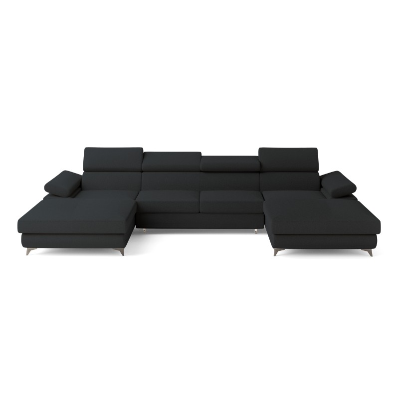 Masseno Narożnik DETTI z funkcją spania i pojemnikiem na pościel Narozniki U, Rozkładana sofa - Czarny, QUELLE 100