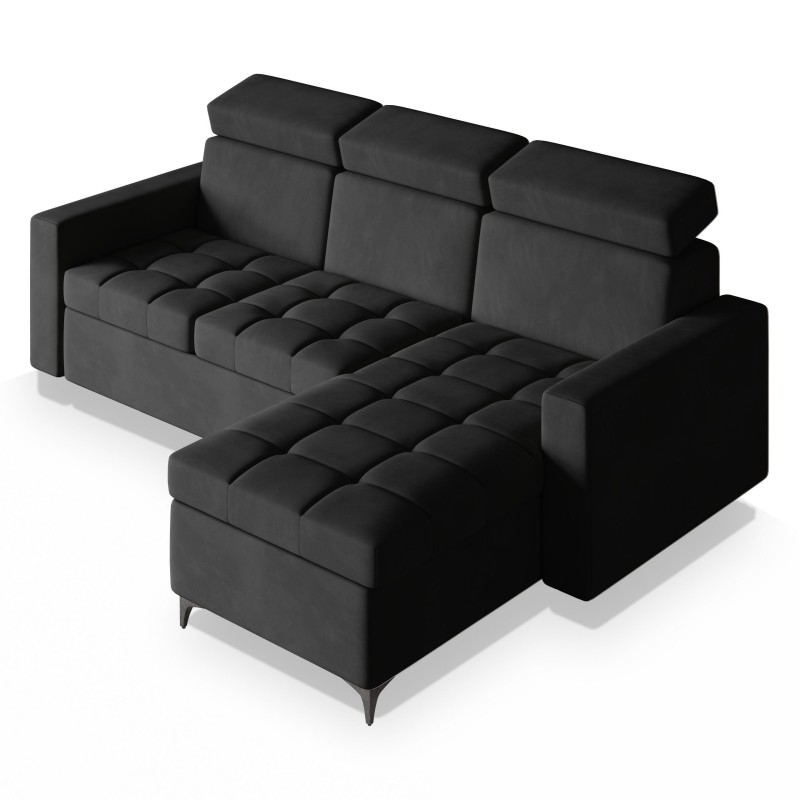 Masseno Narożnik KAME z funkcją spania i pojemnikiem na pościel Narozniki L, Rozkładana sofa - Czarny, KRONOS 07