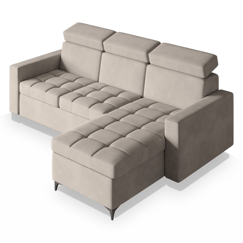 Masseno Narożnik KAME z funkcją spania i pojemnikiem na pościel Narozniki L, Rozkładana sofa - Beżowy, PAROS 02