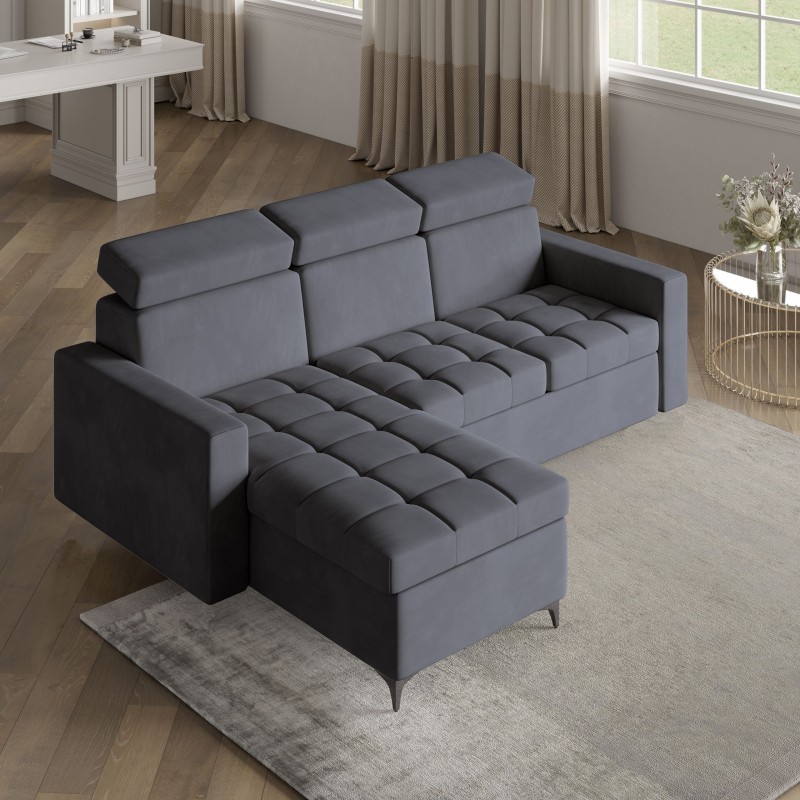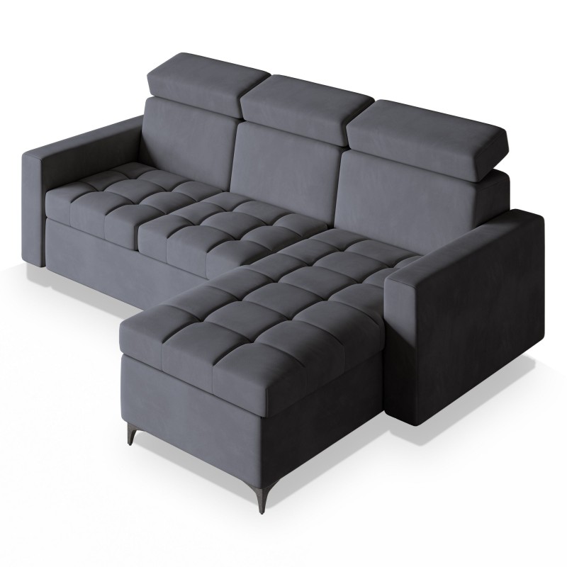 Masseno Narożnik KAME z funkcją spania i pojemnikiem na pościel Narozniki L, Rozkładana sofa - Szary, PAROS 06