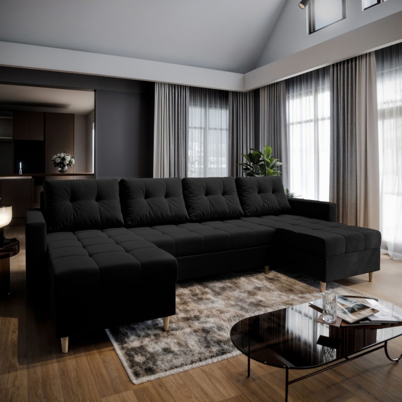 Masseno Narożnik MILO z funkcją spania i pojemnikiem na pościel Narozniki U, Rozkładana sofa - Czarny, KRONOS 07
