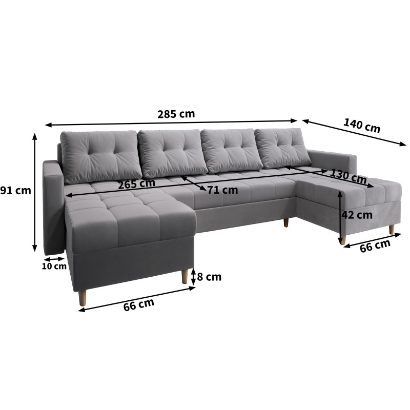 - Wysokiej jakości funkcja spania zapewni wyjątkowy komfort wypoczynku nawet najbardziej zmęczonym gościom. Jej imponujące wymiary wynoszą aż 130x265 cm, dzięki czemu mebel idealnie nadaje się nie tylko do spania, lecz także do wspólnego spędzania czasu przy rodzinnej rozrywce.