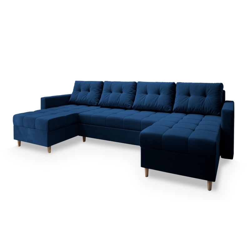 Masseno Narożnik MILO z funkcją spania i pojemnikiem na pościel Narozniki U, Rozkładana sofa - Niebieski, KRONOS 09