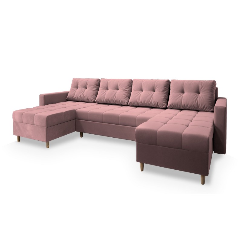 Masseno Narożnik MILO z funkcją spania i pojemnikiem na pościel Narozniki U, Rozkładana sofa - Pudrowy róż, KRONOS 27