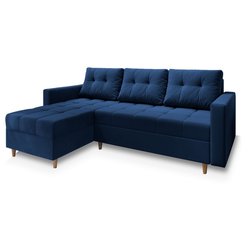Masseno Narożnik MILO z funkcją spania i pojemnikiem na pościel Narozniki L, Rozkładana sofa - Niebieski, KRONOS 09