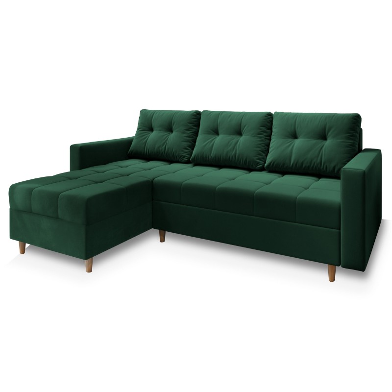 Masseno Narożnik MILO z funkcją spania i pojemnikiem na pościel Narozniki L, Rozkładana sofa - Butelkowa zieleń, KRONOS 19