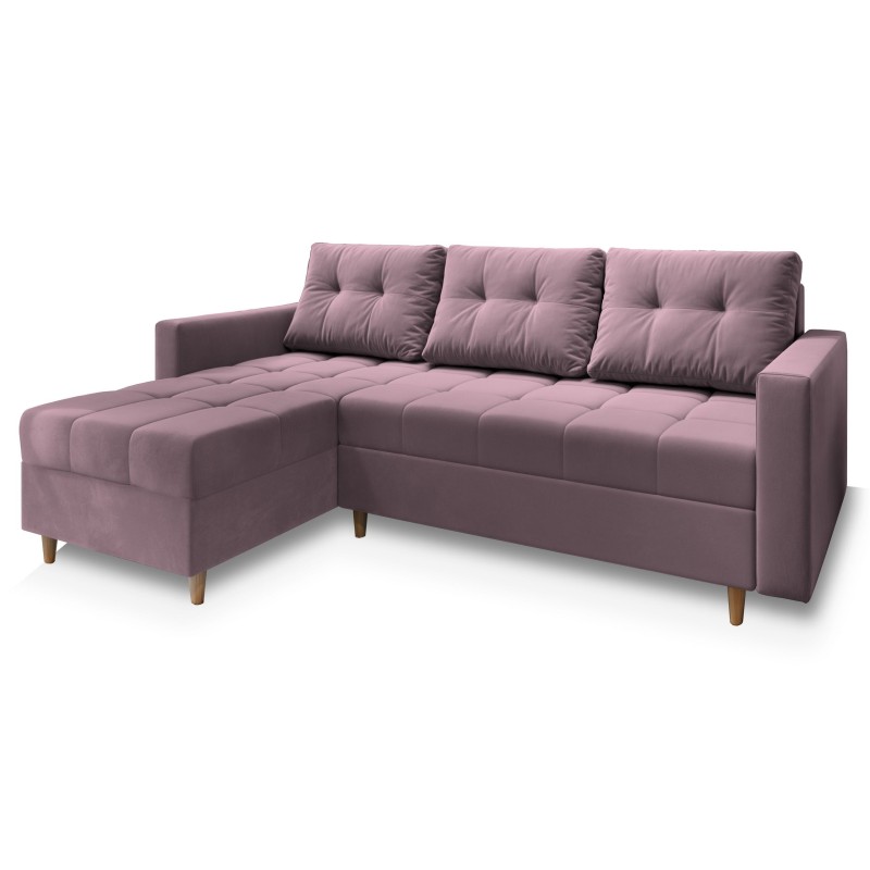 Masseno Narożnik MILO z funkcją spania i pojemnikiem na pościel Narozniki L, Rozkładana sofa - Pudrowy róż, KRONOS 27