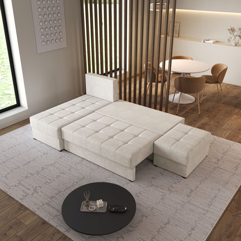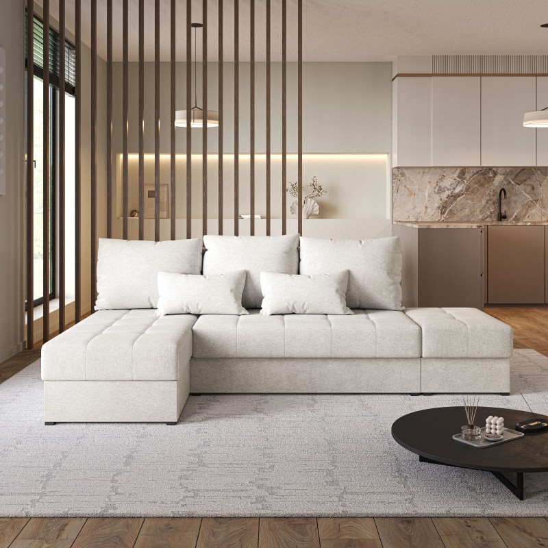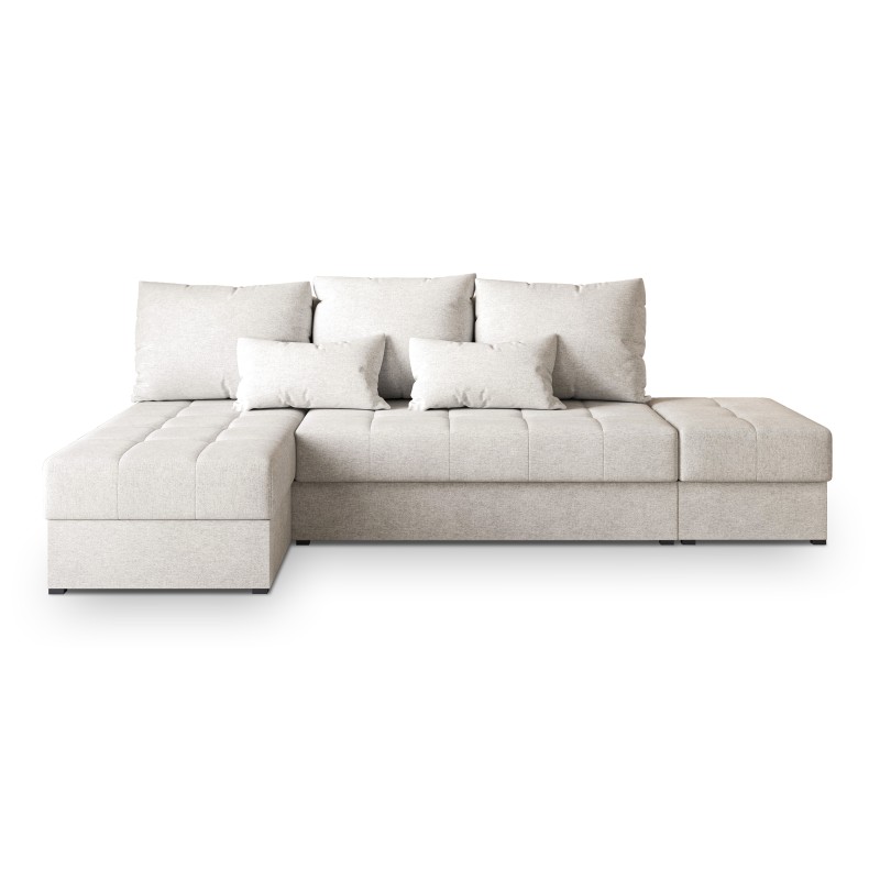 Masseno Narożnik NORVI z funkcją spania i pojemnikiem na pościel Narozniki L, Rozkładana sofa - Kremowy, NEVE 02