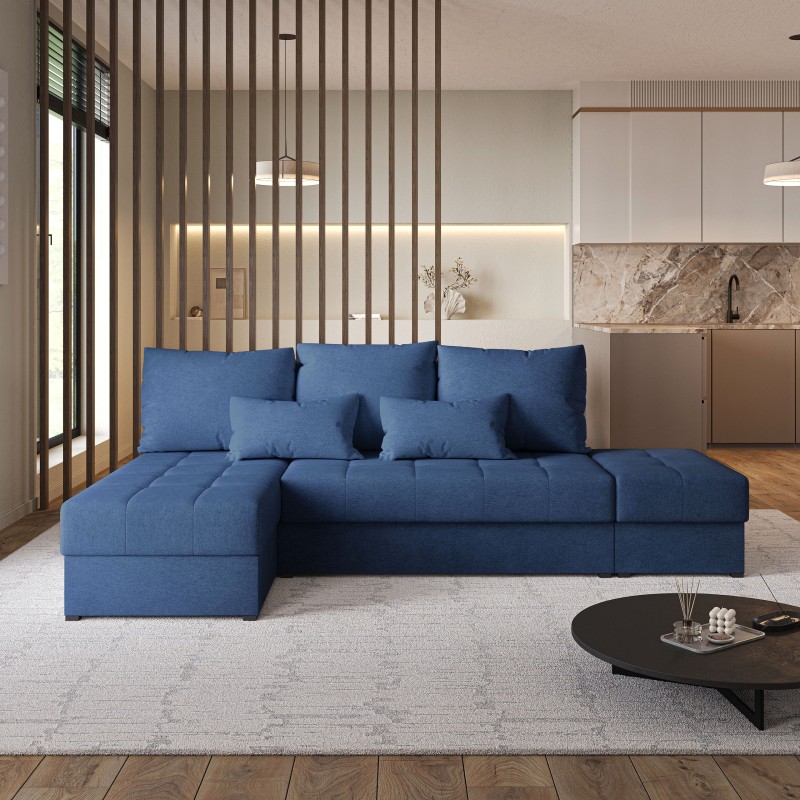 Masseno Narożnik NORVI z funkcją spania i pojemnikiem na pościel Narozniki L, Rozkładana sofa - Niebieski, NEVE 77
