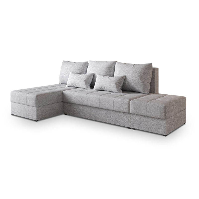 Masseno Narożnik NORVI z funkcją spania i pojemnikiem na pościel Narozniki L, Rozkładana sofa - Jasnoszary, NEVE 83
