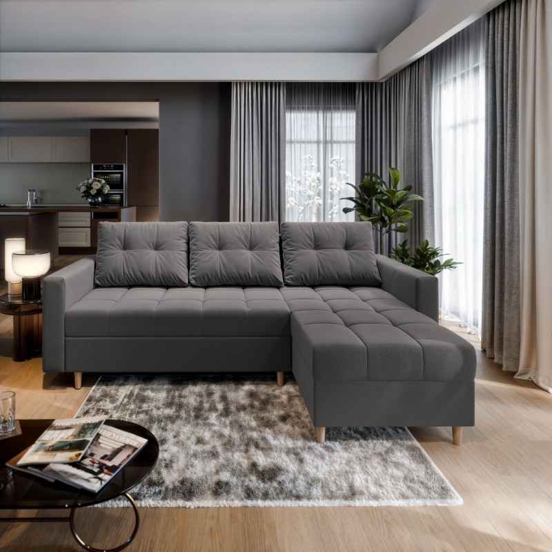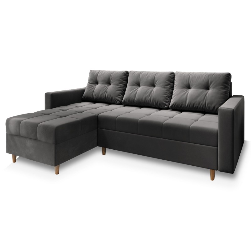 Masseno Narożnik MILO z funkcją spania i pojemnikiem na pościel Narozniki L, Rozkładana sofa - Szary, PAROS 06