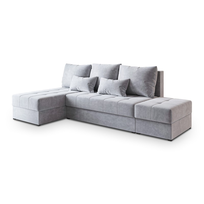Masseno Narożnik NORVI z funkcją spania i pojemnikiem na pościel Narozniki L, Rozkładana sofa - Jasnoszary, PAROS 05