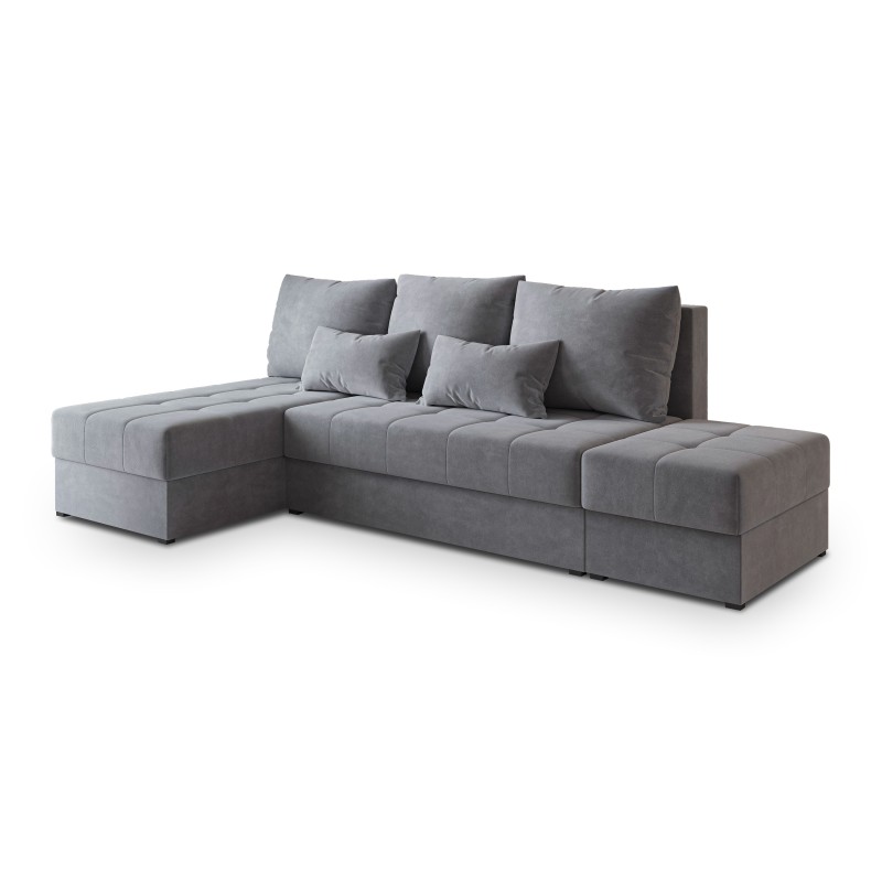 Masseno Narożnik NORVI z funkcją spania i pojemnikiem na pościel Narozniki L, Rozkładana sofa - Szary, KRONOS 15
