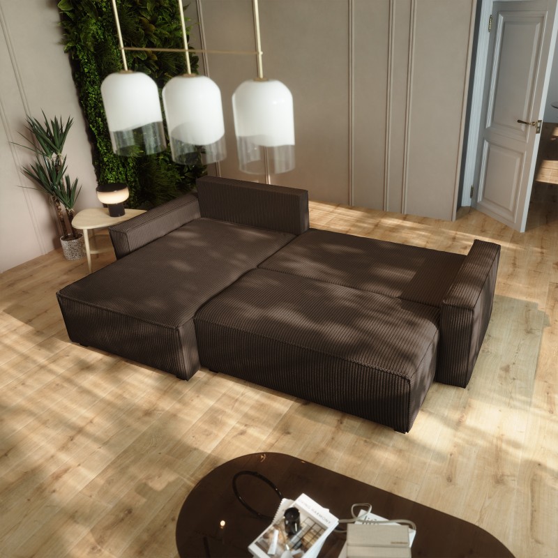 Masseno Narożnik BESMIR z funkcją spania i pojemnikiem na pościel Narozniki L, Rozkładana sofa - Brązowy, POSO 06