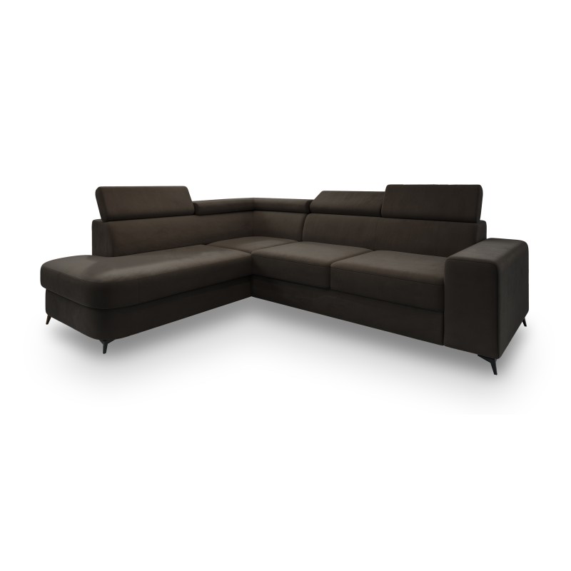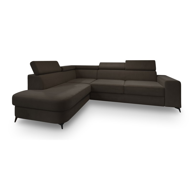Masseno Narożnik ALVORO z funkcją spania i pojemnikiem na pościel Narozniki L, Rozkładana sofa - Brązowy, MATT VELVET 29