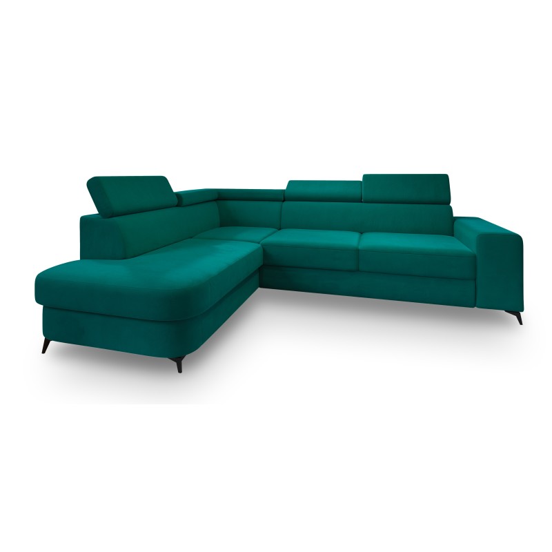 Masseno Narożnik ALVORO z funkcją spania i pojemnikiem na pościel Narozniki L, Rozkładana sofa - Lazurowy, MATT VELVET 77