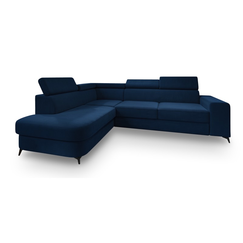Masseno Narożnik ALVORO z funkcją spania i pojemnikiem na pościel Narozniki L, Rozkładana sofa - Niebieski, MATT VELVET 79