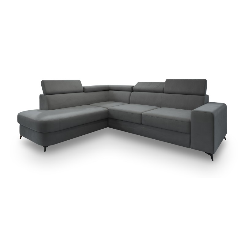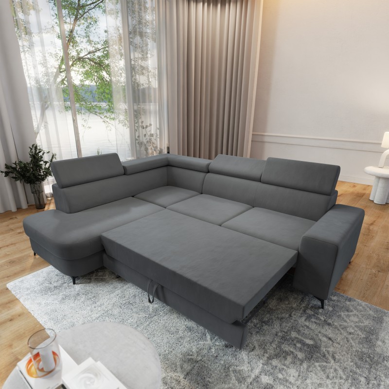 Masseno Narożnik ALVORO z funkcją spania i pojemnikiem na pościel Narozniki L, Rozkładana sofa - Szary, MATT VELVET 85