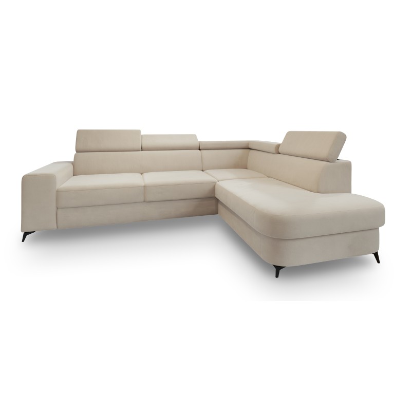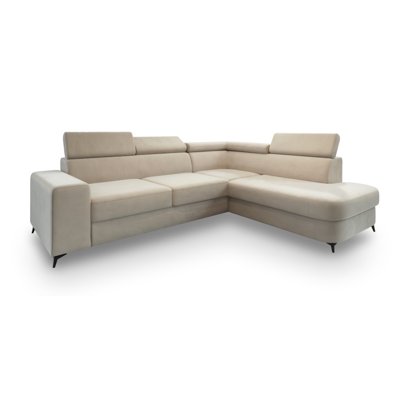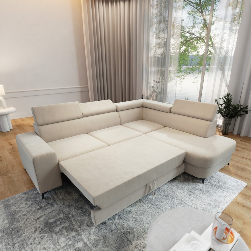 Masseno Narożnik ALVORO z funkcją spania i pojemnikiem na pościel Narozniki L, Rozkładana sofa - Kremowy, MATT VELVET 06