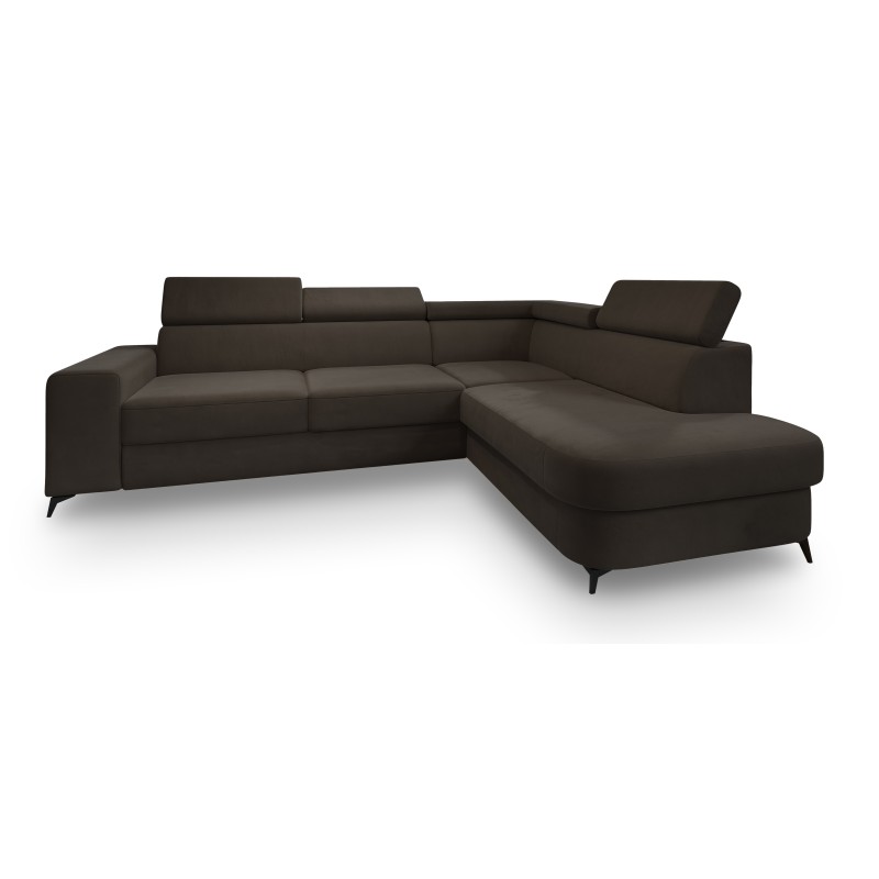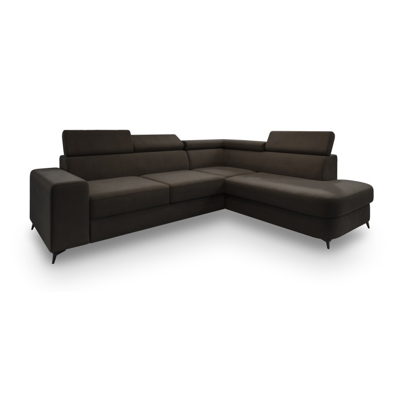 Masseno Narożnik ALVORO z funkcją spania i pojemnikiem na pościel Narozniki L, Rozkładana sofa - Brązowy, MATT VELVET 29