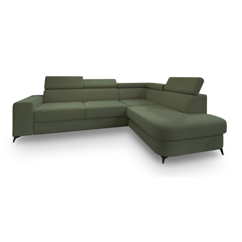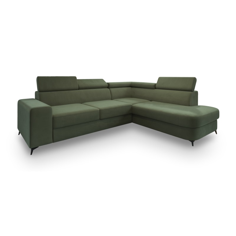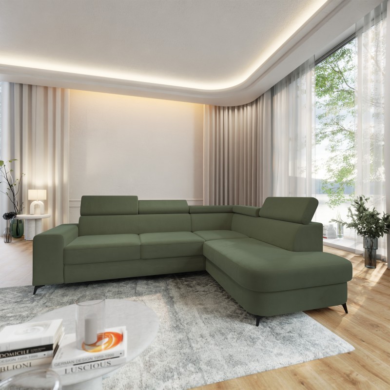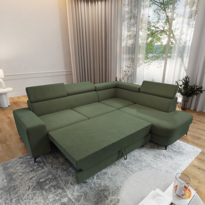 Masseno Narożnik ALVORO z funkcją spania i pojemnikiem na pościel Narozniki L, Rozkładana sofa - Zielony, MATT VELVET 38
