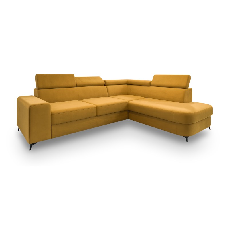 Masseno Narożnik ALVORO z funkcją spania i pojemnikiem na pościel Narozniki L, Rozkładana sofa - Żółty, MATT VELVET 48