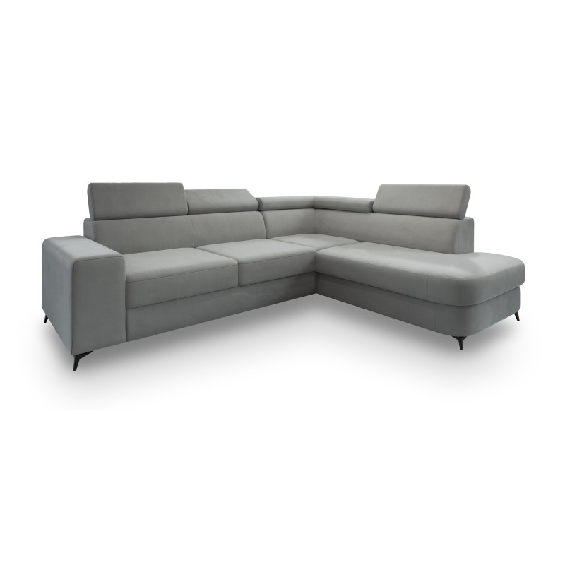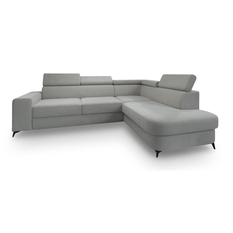 Masseno Narożnik ALVORO z funkcją spania i pojemnikiem na pościel Narozniki L, Rozkładana sofa - Jasnoszary, MATT VELVET 83