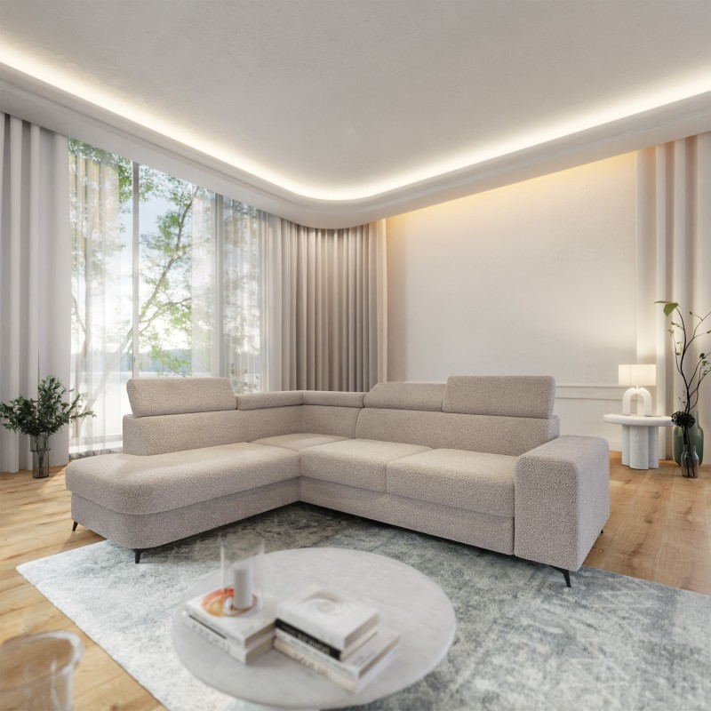 Masseno Narożnik ALVORO z funkcją spania i pojemnikiem na pościel Narozniki L, Rozkładana sofa - Beżowy, QUELLE 05