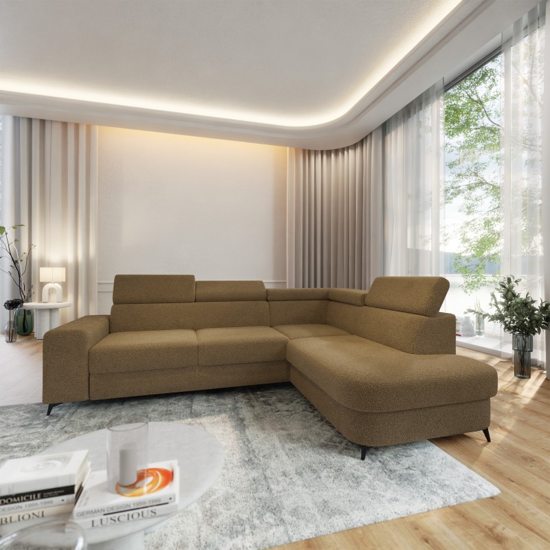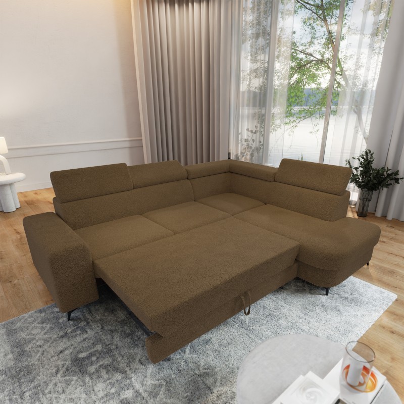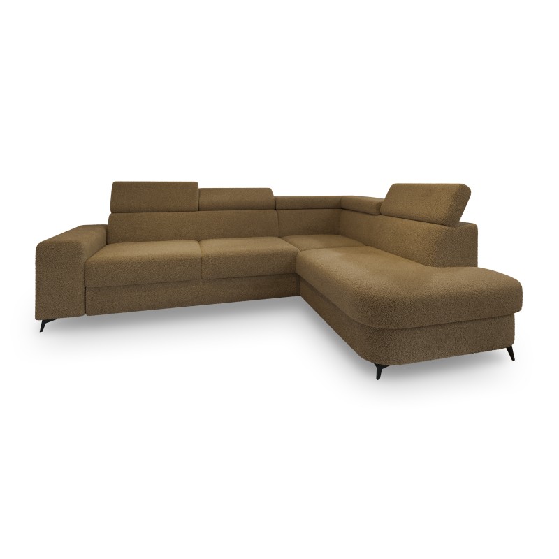 Masseno Narożnik ALVORO z funkcją spania i pojemnikiem na pościel Narozniki L, Rozkładana sofa - Miodowy, QUELLE 17