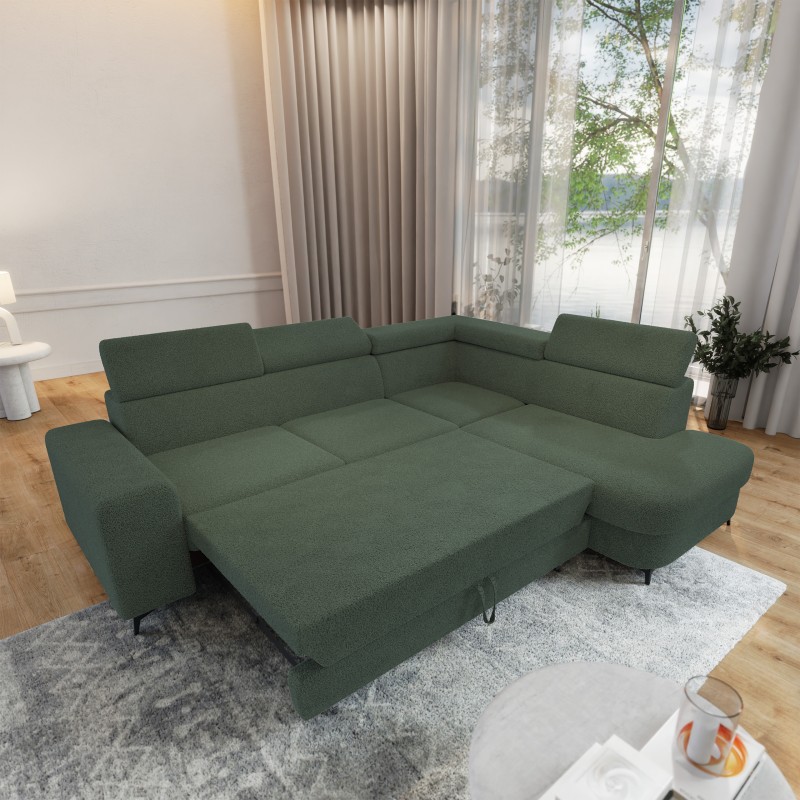 Masseno Narożnik ALVORO z funkcją spania i pojemnikiem na pościel Narozniki L, Rozkładana sofa - Zielony, QUELLE 37