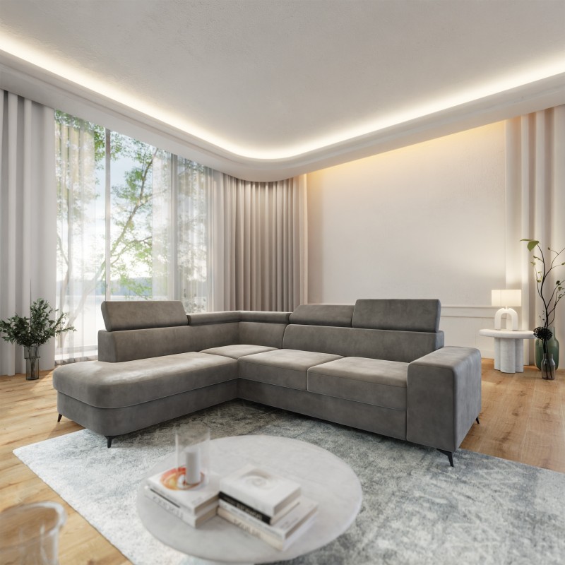 Masseno Narożnik ALVORO z funkcją spania i pojemnikiem na pościel Narozniki L, Rozkładana sofa - Szary, MONOLITH 85