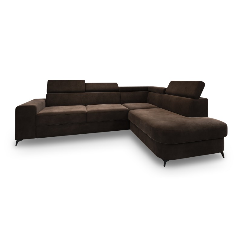 Masseno Narożnik ALVORO z funkcją spania i pojemnikiem na pościel Narozniki L, Rozkładana sofa - Brązowy, MONOLITH 29