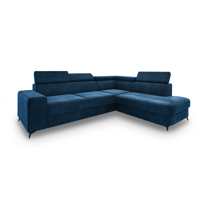Masseno Narożnik ALVORO z funkcją spania i pojemnikiem na pościel Narozniki L, Rozkładana sofa - Niebieski, MONOLITH 77