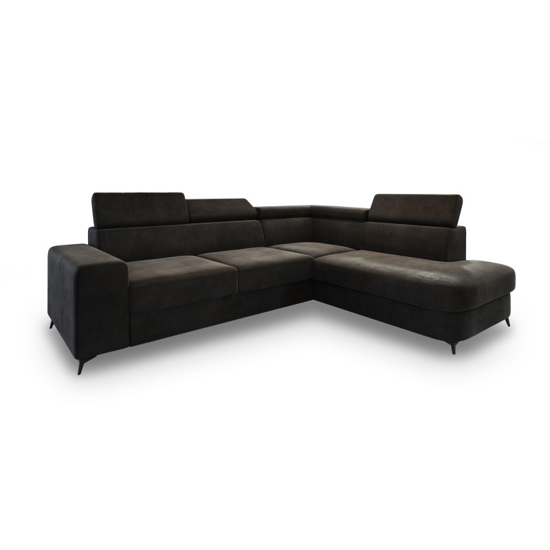 Masseno Narożnik ALVORO z funkcją spania i pojemnikiem na pościel Narozniki L, Rozkładana sofa - Czarny, MONOLITH 95