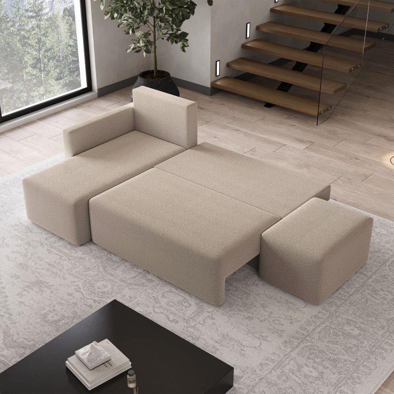 Masseno Narożnik VELOTTI z funkcją spania i pojemnikiem na pościel Narozniki L, Rozkładana sofa - Beżowy, QUELLE 05
