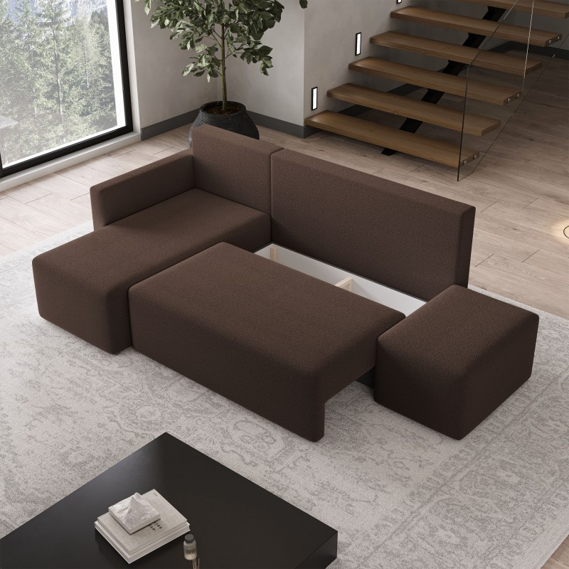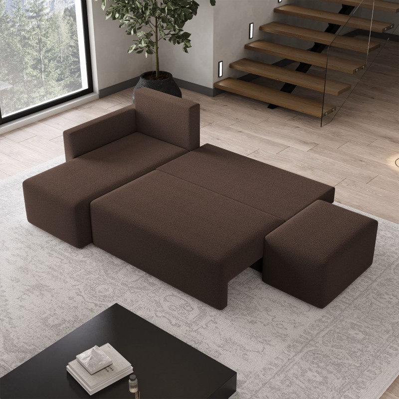Masseno Narożnik VELOTTI z funkcją spania i pojemnikiem na pościel Narozniki L, Rozkładana sofa - Brązowy, QUELLE 25