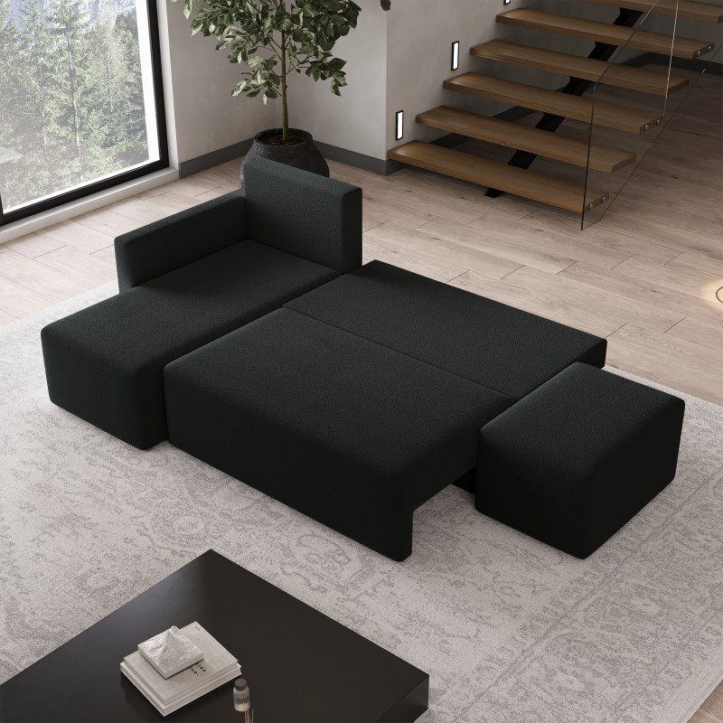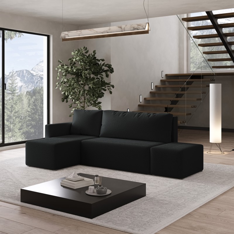 Masseno Narożnik VELOTTI z funkcją spania i pojemnikiem na pościel Narozniki L, Rozkładana sofa - Czarny, QUELLE 100