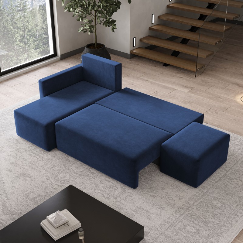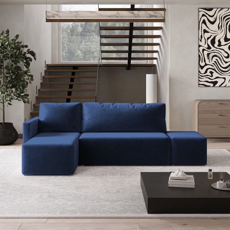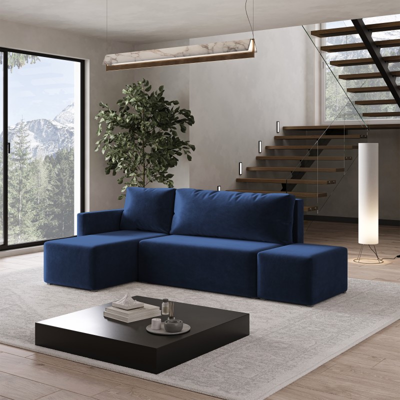 Masseno Narożnik VELOTTI z funkcją spania i pojemnikiem na pościel Narozniki L, Rozkładana sofa - Niebieski, KRONOS 09
