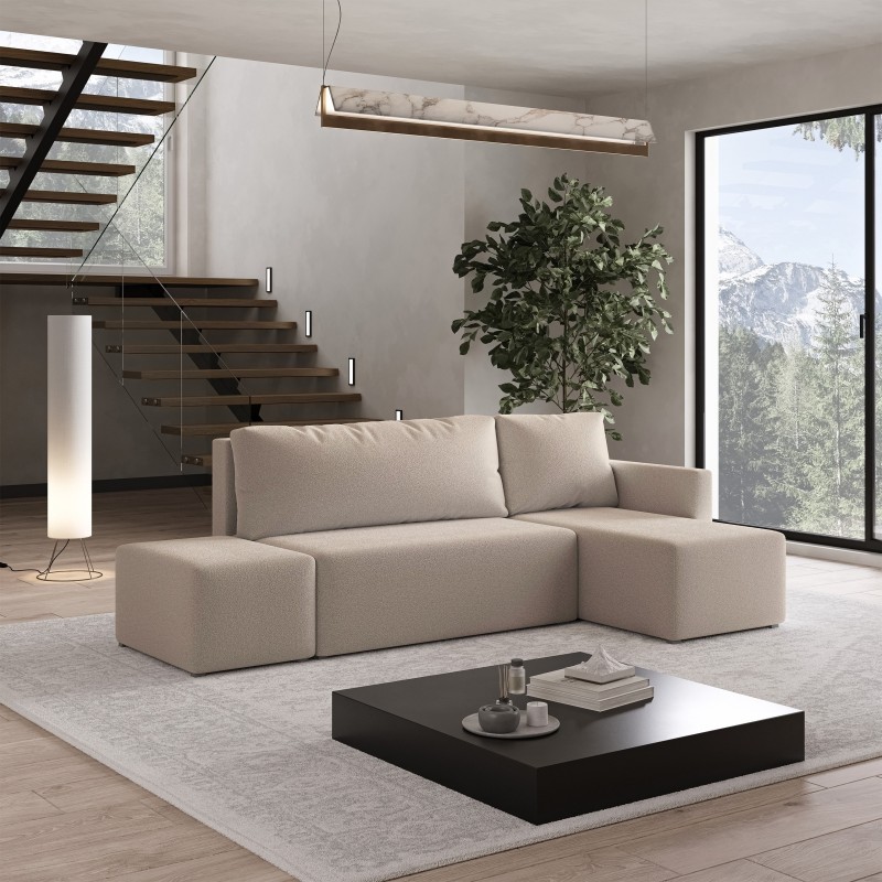 Masseno Narożnik VELOTTI z funkcją spania i pojemnikiem na pościel Narozniki L, Rozkładana sofa - Beżowy, QUELLE 05