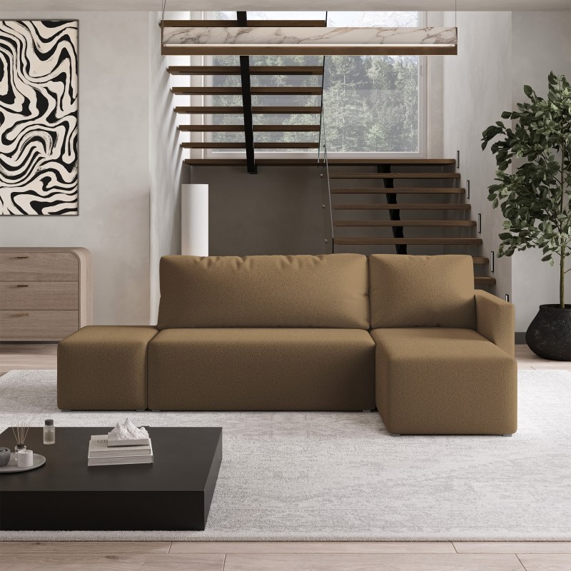 Masseno Narożnik VELOTTI z funkcją spania i pojemnikiem na pościel Narozniki L, Rozkładana sofa - Miodowy, QUELLE 17