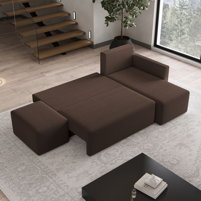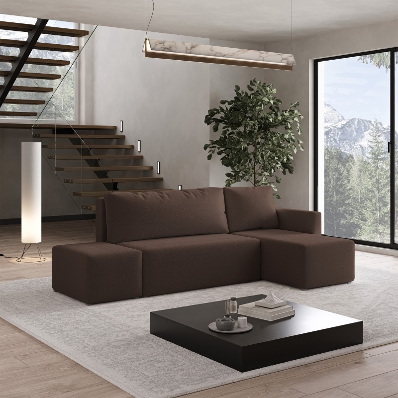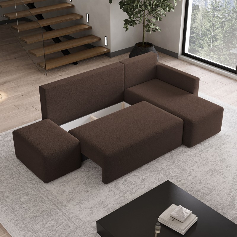 Masseno Narożnik VELOTTI z funkcją spania i pojemnikiem na pościel Narozniki L, Rozkładana sofa - Brązowy, QUELLE 25