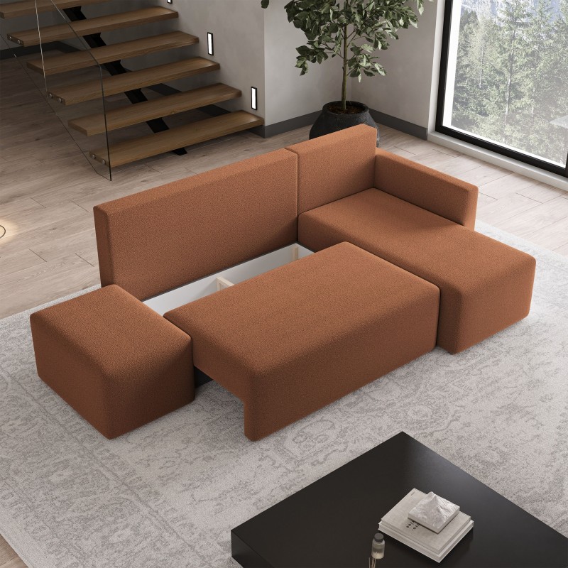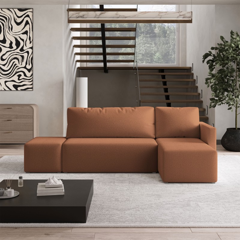 Masseno Narożnik VELOTTI z funkcją spania i pojemnikiem na pościel Narozniki L, Rozkładana sofa - Miedziany, QUELLE 54